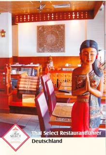Noch ein kleiner Tip: Immer wenn Sie reisen, egal ob in Deutschland, Europa oder weltweit, achten Sie bitte auf das Authentizität- Qualitätssiegel Thai SELECT, eine Garantie dafür, dass Sie eine authentische, köstliche thailaendische Delikatesse in gemütlicher Atmosphäre genießen können. Eine kleine Broschüre von Deutschlands Thai SELECT Restaurants haben wir bei uns ausliegen.