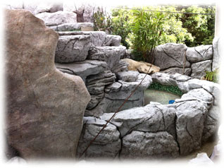 Falls Sie dann vom Aquarienschauen noch nicht genug haben, können Sie dieses fortsetzen, wenn Sie im ersten Stock auf das Info-Gespräch mit Michael warten. Auch Khun Lung saß da schon einig Male und schaute den Fischen bei ihren Schwimmübungen zu. Er hat ja im Moment leider keins mehr, das letzte ist ihm leider im Hochwasser in Bangkok versunken :-((