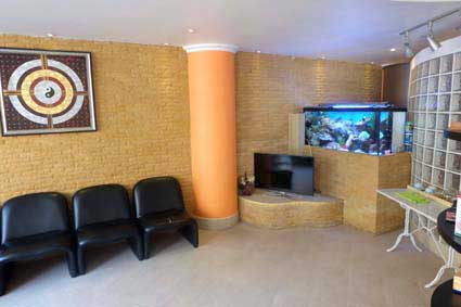 Im Wartebereich koennen Sie sich mit ausgesuchten thailandspezifischen Publikationen in verschiedenen Sprachen, ein wenig die Zeit vertreiben. Es ist zwar wissenschaftlich nicht bewiesen, aber ein Aquarium soll entspannend und beruhigend wirken und das braucht vielleicht der Ein oder die Andere.