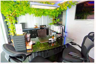 Wenn Sie die Praxis betreten, erfolgt der erste Kontakt im Empfangsbereich. Da stellen Sie fest, dass Sie tatsächlich in einer Zahnarztpraxis im Land des Lächelns sind. Insgeheim beginnen Sie zu hoffen, auch mit solch strahlend weissen Zähnen und einem Lächeln auf den Lippen, nach Abschluss Ihrer Behandlung entlassen zu werden.