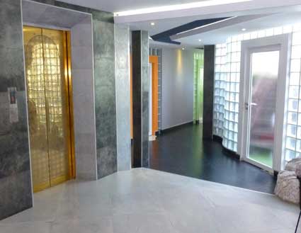 An der Anmeldung geht mann/frau vorbei um rechts die Treppe hoch oder geradeaus zum Hingucker, dem neuen Fahrstuhl. Davon leider kein Pic vorhanden, wenn Timo das hier liest, vielleicht schickt er ja die zwei :-)