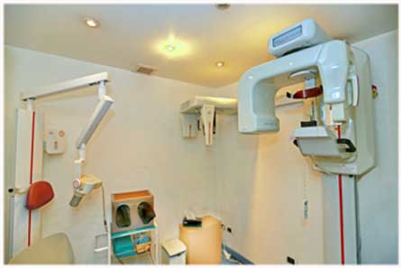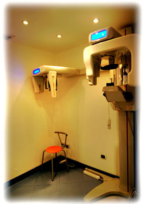 Das Highlight der neuen Zahnarzträume wird jedoch ein zusätzlicher Röntgenraum, ausgestattet mit dem zur Zeit modernsten Röntgengerät, einem 3D-Volumen-Tomographen. Diese spezielle Apparatur kreist 360 Grad um den Kopf des Patienten und macht für jedes Grad eine Röntgenaufnahme, somit 360 Einzelaufnahmen. Bei minimaler Strahlenbelastung (80 % niedriger als bei Computer-Tomographie) ergeben sich einzigartige 3D-Einblicke in den Kieferbereich. Da auch unmittelbare Segmente (Halswirbelsäule, Ohr, Nasennebenhöhlen) optisch erfasst werden, können diese Aufnahmen anderen Fachärzten zur Verfügung gestellt werden.