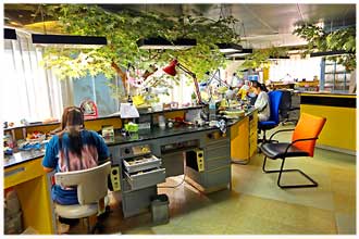 Im obersten Stockwerk wurde ebenso zum Wohlbefinden der Mitarbeiter, das praxiseigene Zahnlabor weiter aufgewertet.